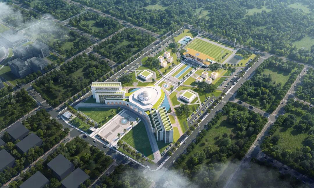 設(shè)計以“桑島之翼”為概念,規(guī)劃結(jié)構(gòu)如雙翼展開,象征治理體系的平等、協(xié)作與守護,開放的前廣場和展開的一體兩翼的建筑形式帶來良好形象。議會廳采用現(xiàn)代化的伊斯蘭穹頂設(shè)計結(jié)合當(dāng)?shù)貍鹘y(tǒng)幾何紋樣,充分考慮當(dāng)?shù)貧夂?,做到遮陽、通風(fēng)、防潮、防雨,通過遮陽廊道、開敞庭院增強熱舒適性,顯著降低建筑能耗。